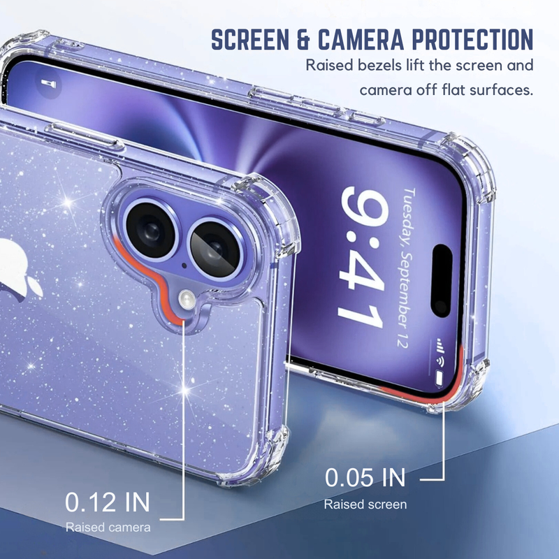 Entronix Case Compatible with iPhone 17 - [Hard Back] Glitter Clear