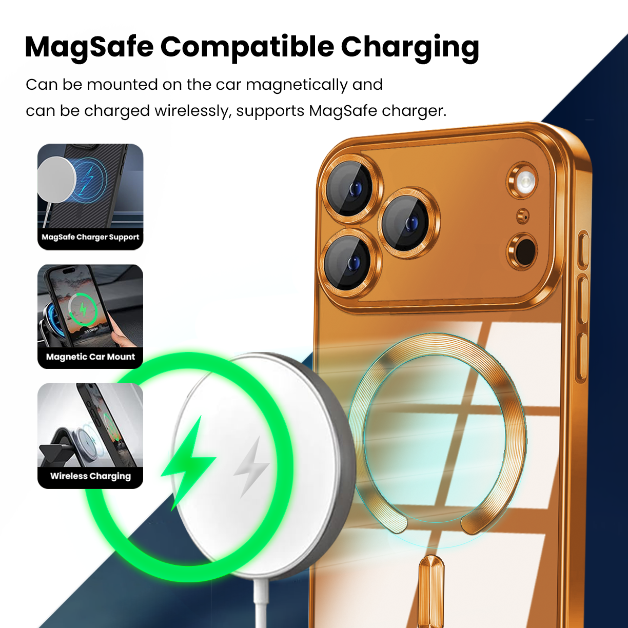 Compatible with MagSafe Accessories & Wireless Chargers: Built-in 38 magnets will automatically attach to those phone accessories with MagSafe. It is also compatible with MagSafe charger and third-party Qi-certified wireless charger.