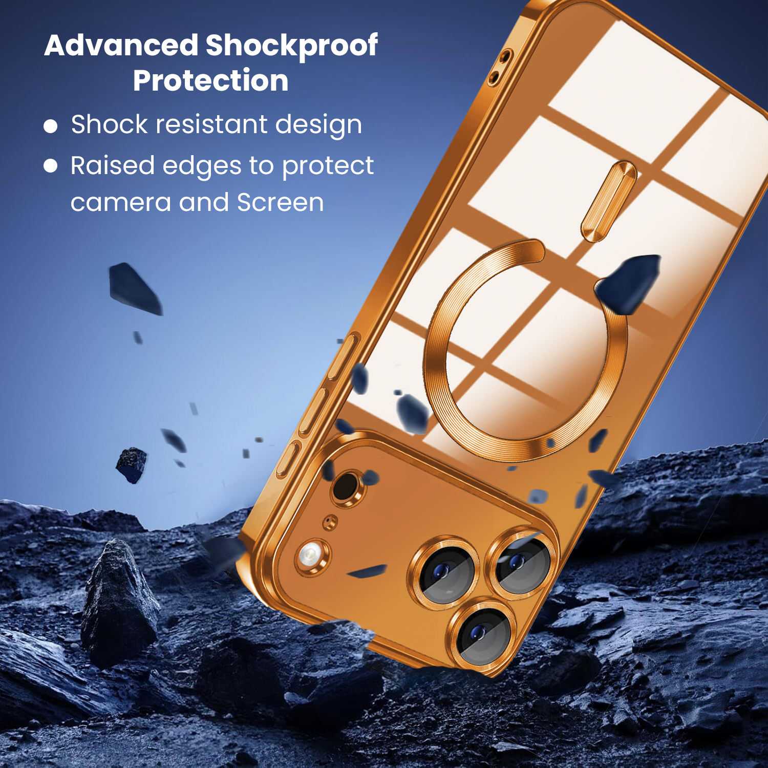 Premium Electroplated Metallic Design with Built-In Camera Lens Protection: This case features a sleek electroplated metallic frame for a modern and stylish edge. The built-in lens protector ensures your camera stays safe from scratches and impact, offering a blend of elegance and functionality.