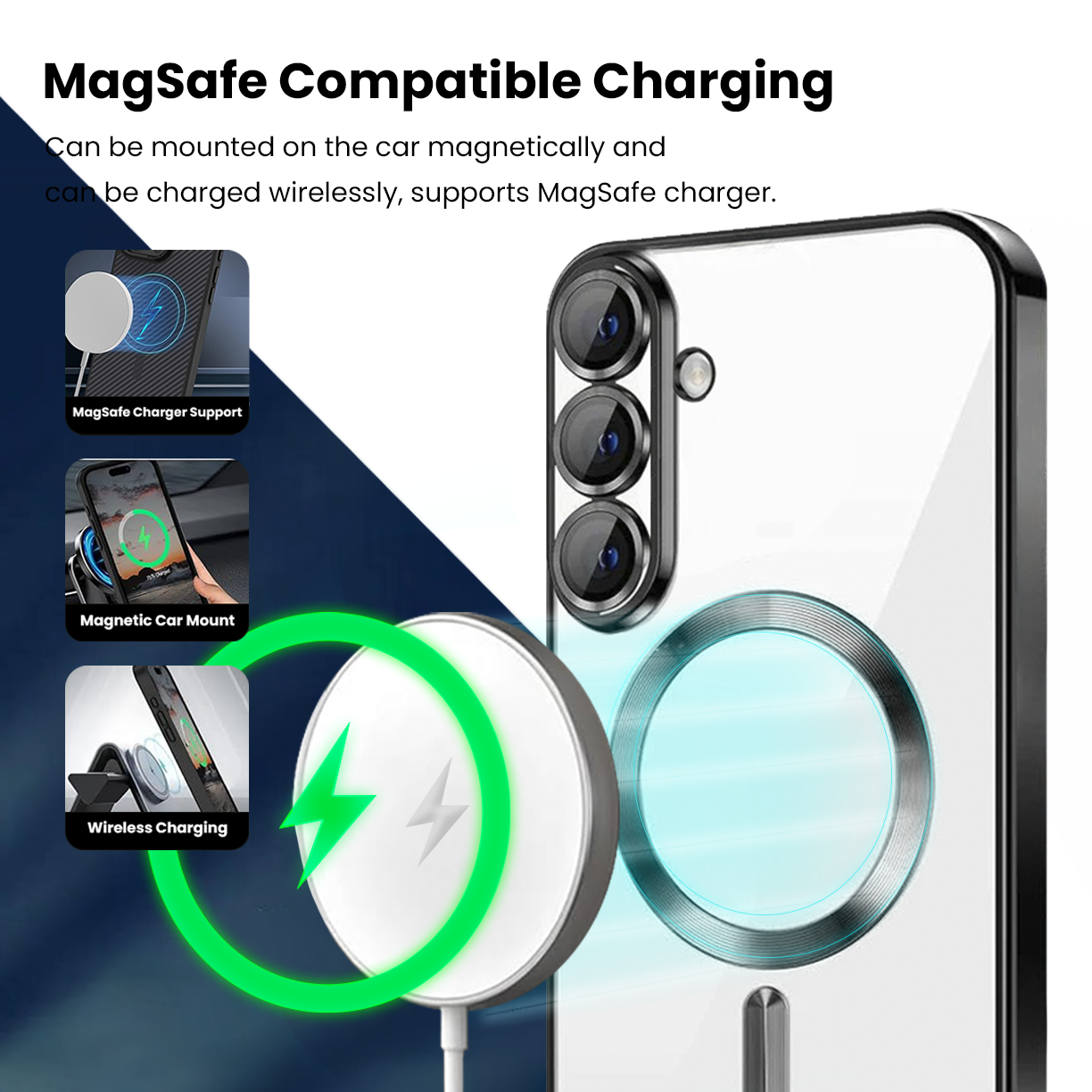 Compatible with MagSafe Accessories & Wireless Chargers: Built-in 38 magnets will automatically attach to those phone accessories with MagSafe. It is also compatible with MagSafe charger and third-party Qi-certified wireless charger.